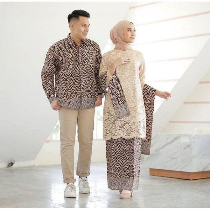 Jual Baju Couple Kemeja Panjang Kebaya Selendang Motif Batik Songket Asmat Wajik Elegan Hitam Coklat Indonesia Shopee Indonesia